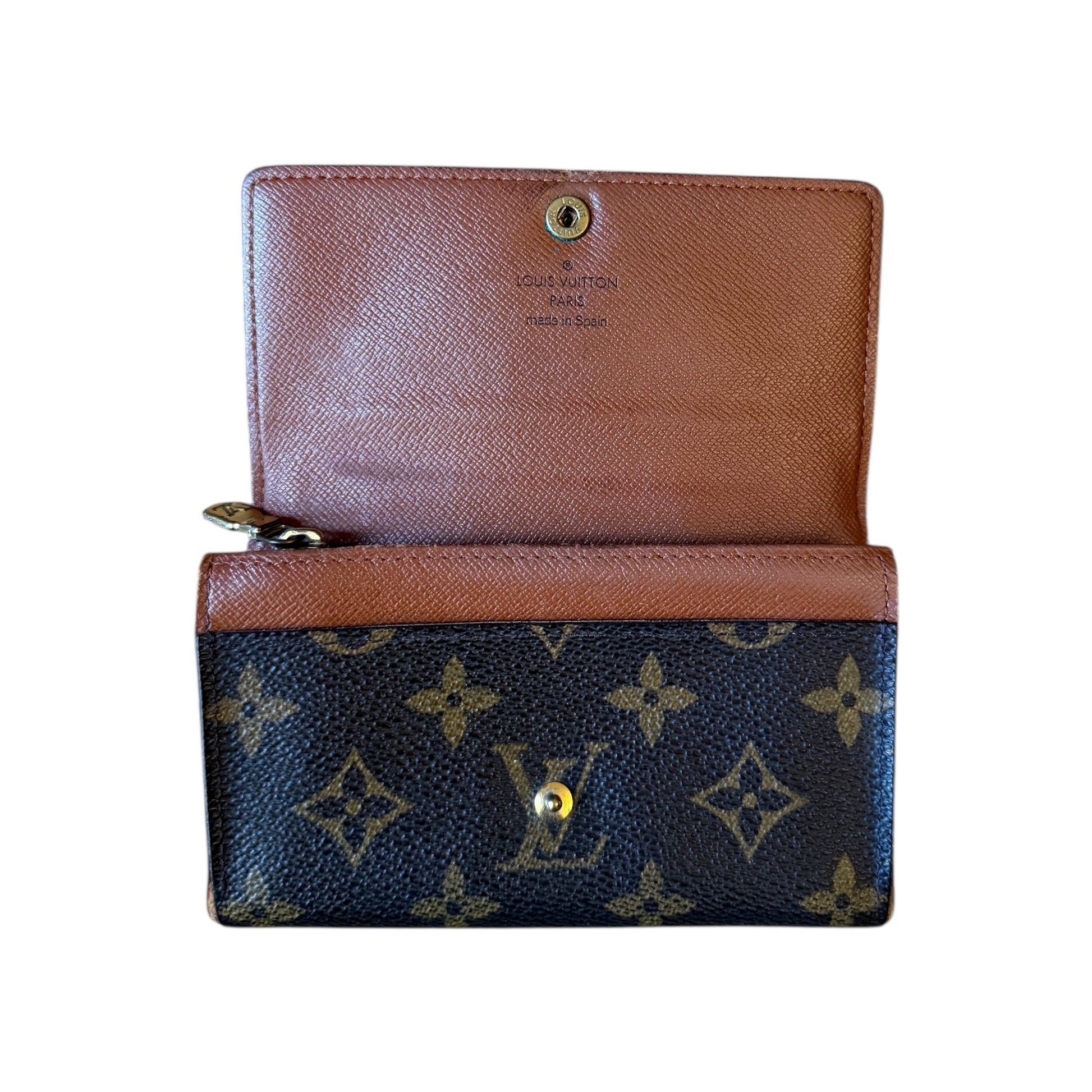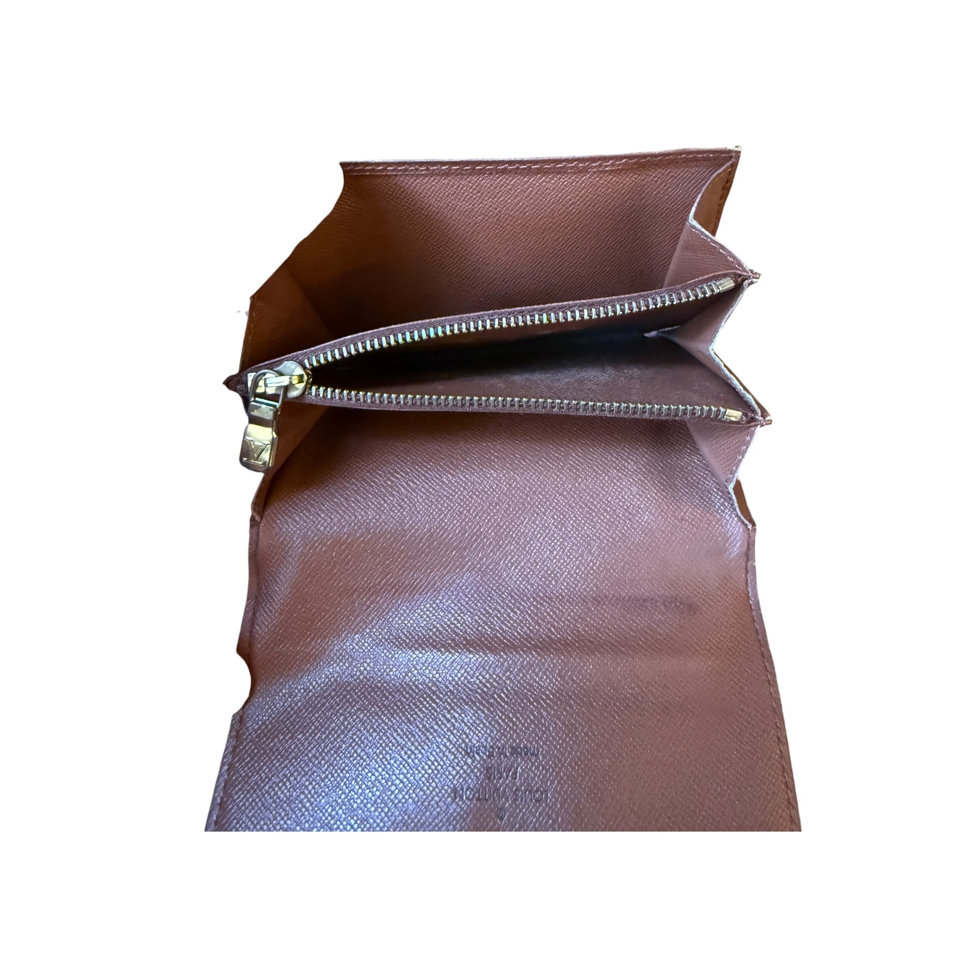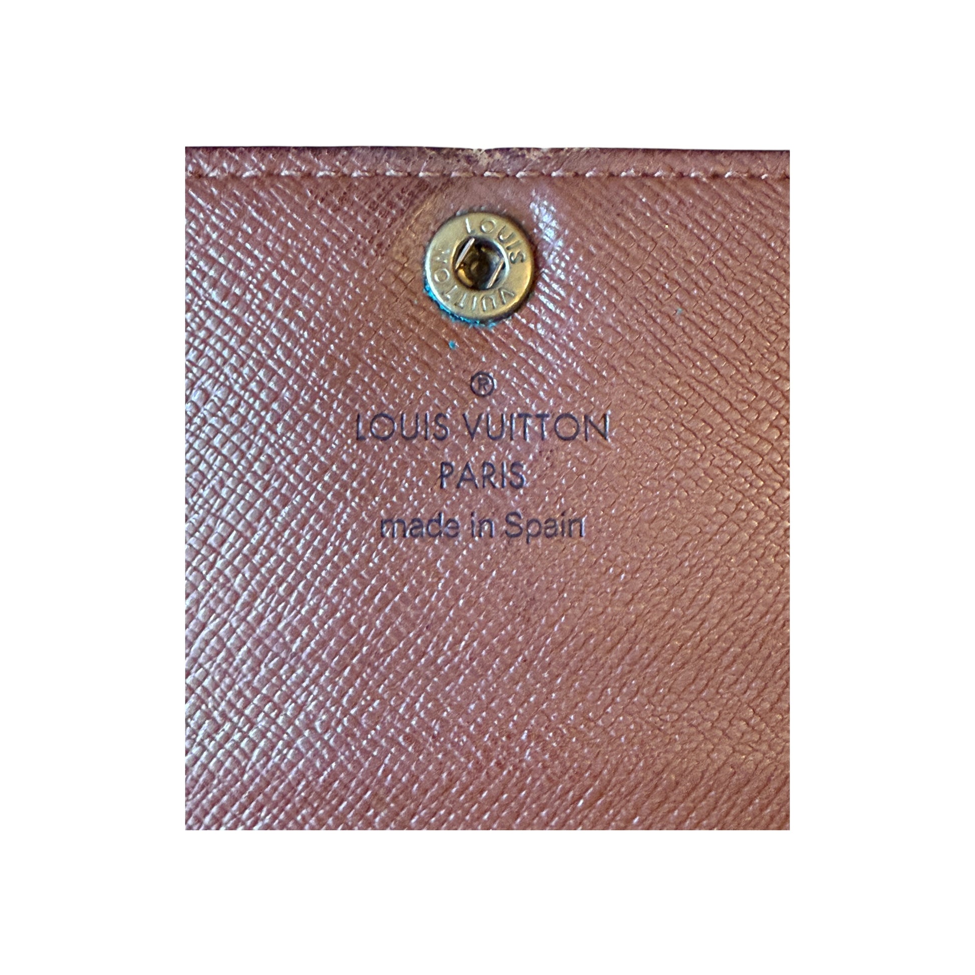 Portefeuille en excellent état extérieur, intérieur très bon. Très légère usure sur les coins inférieurs. Fermetures et bouton fonctionnent parfaitement.