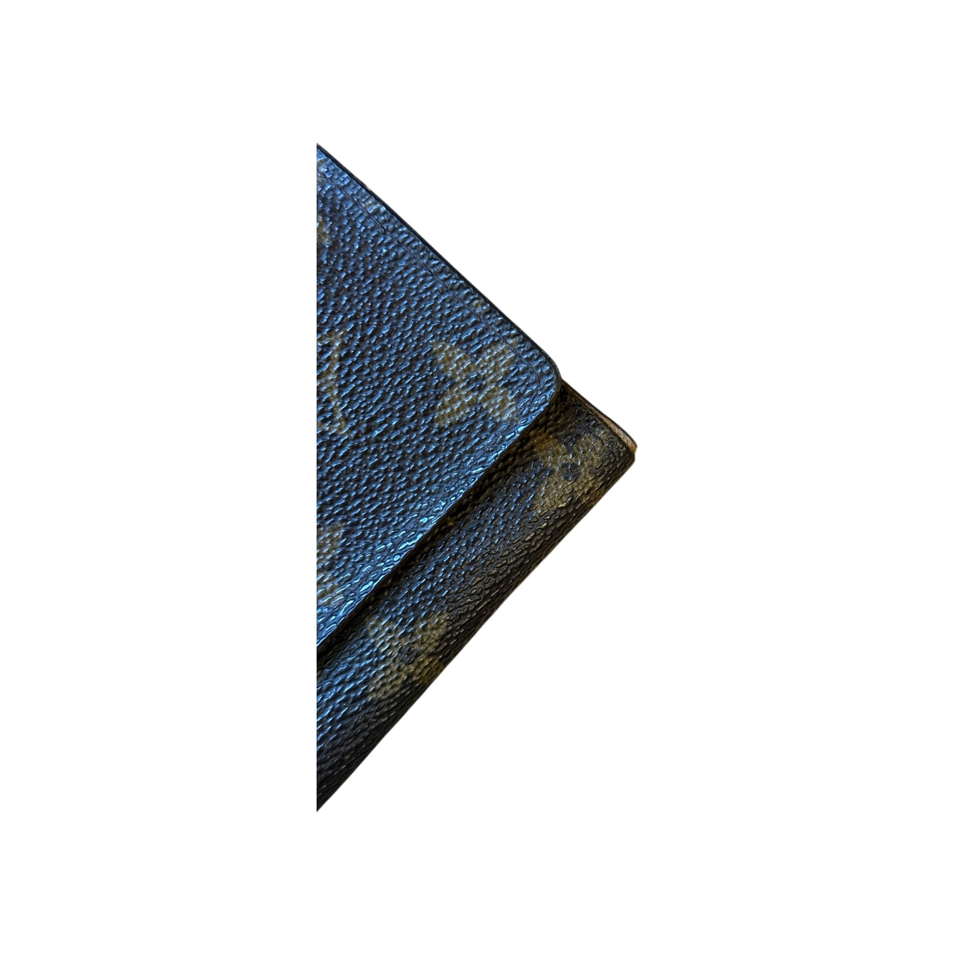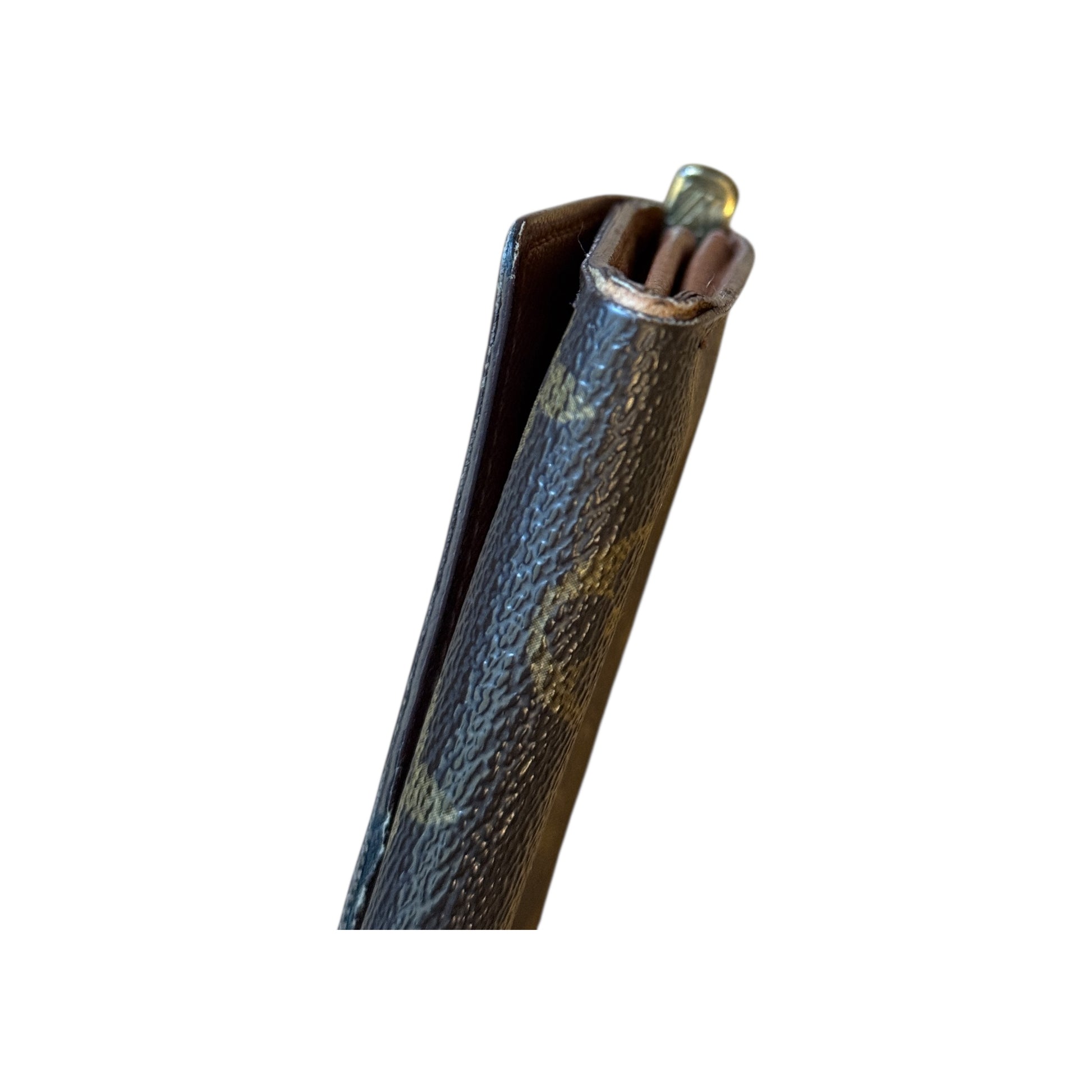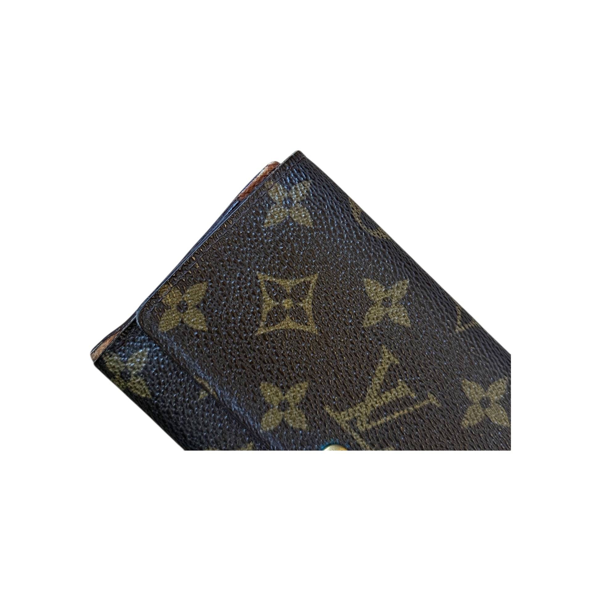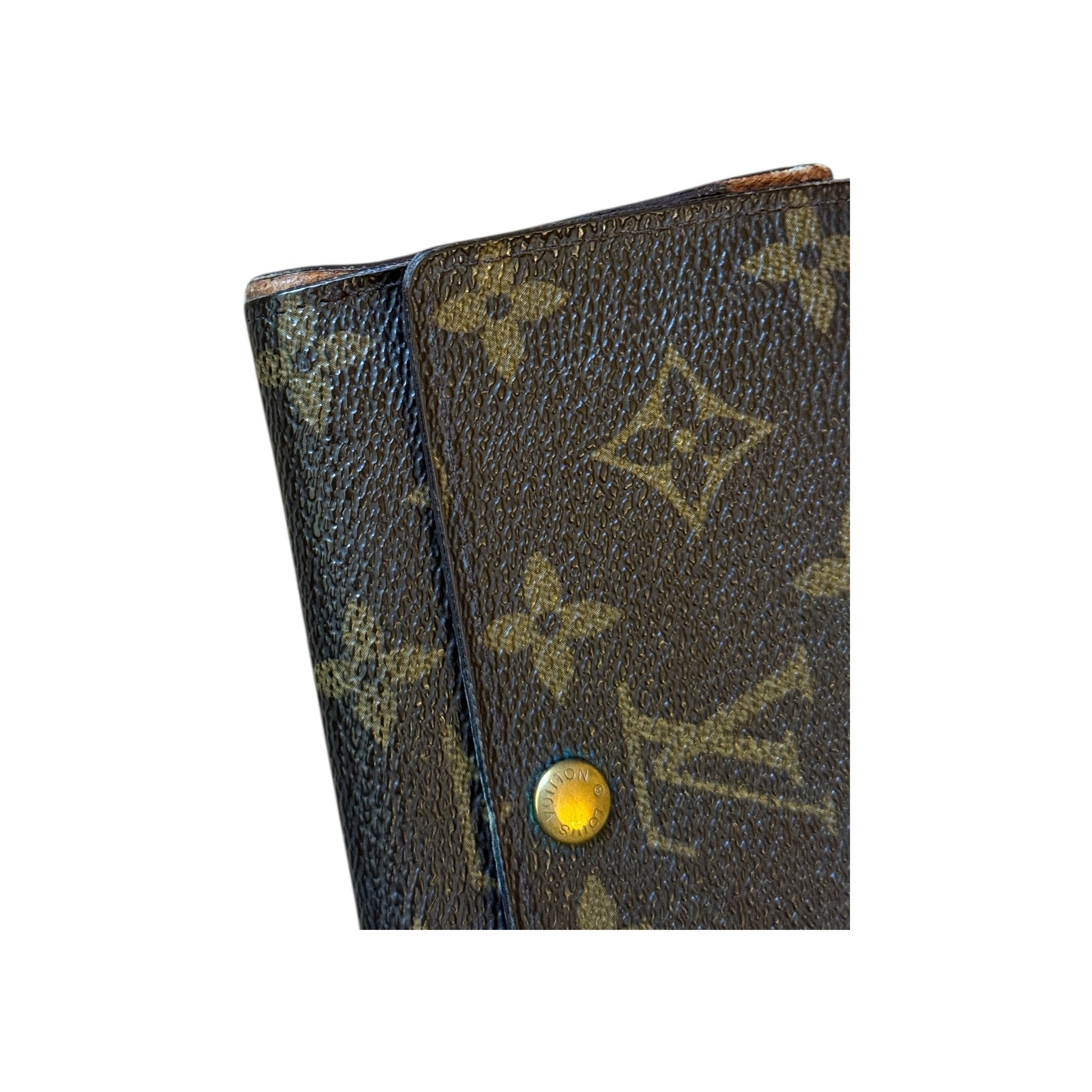Portefeuille en excellent état extérieur, intérieur très bon. Très légère usure sur les coins inférieurs. Fermetures et bouton fonctionnent parfaitement.
