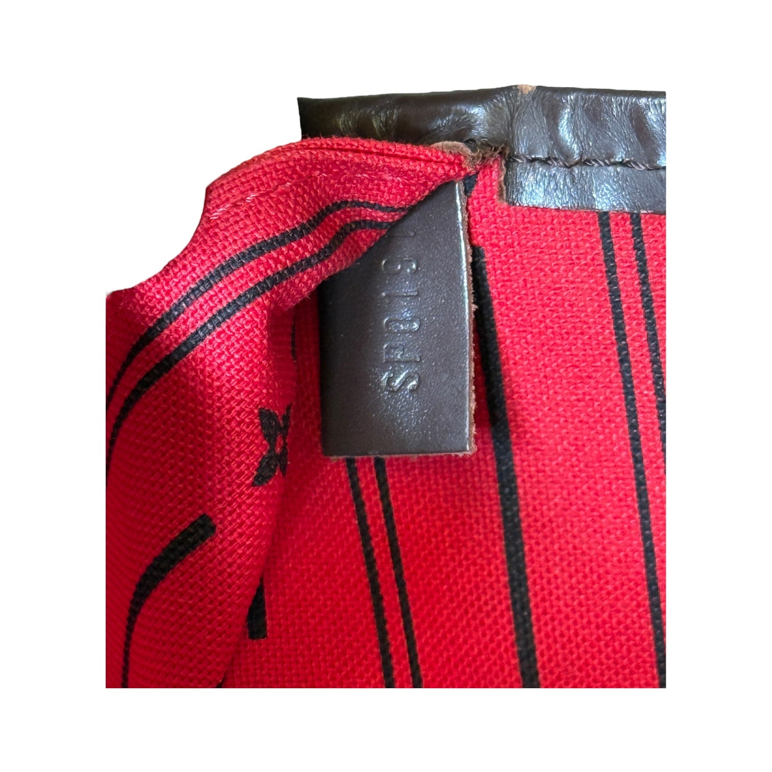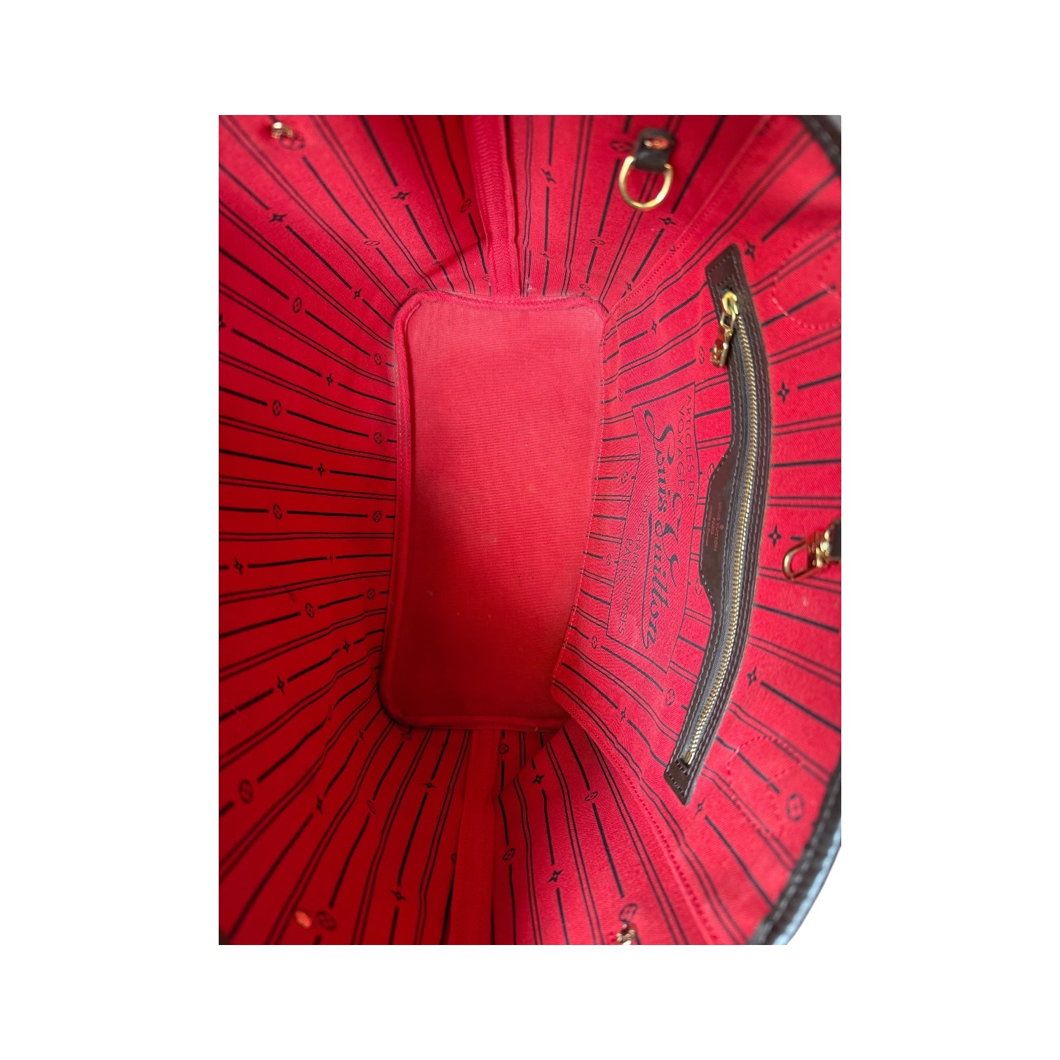 L’extérieur est en excellent état : la toile Damier Ébène est intacte, les anses sont parfaitement conservées, et l’intérieur rouge est propre et lumineux.