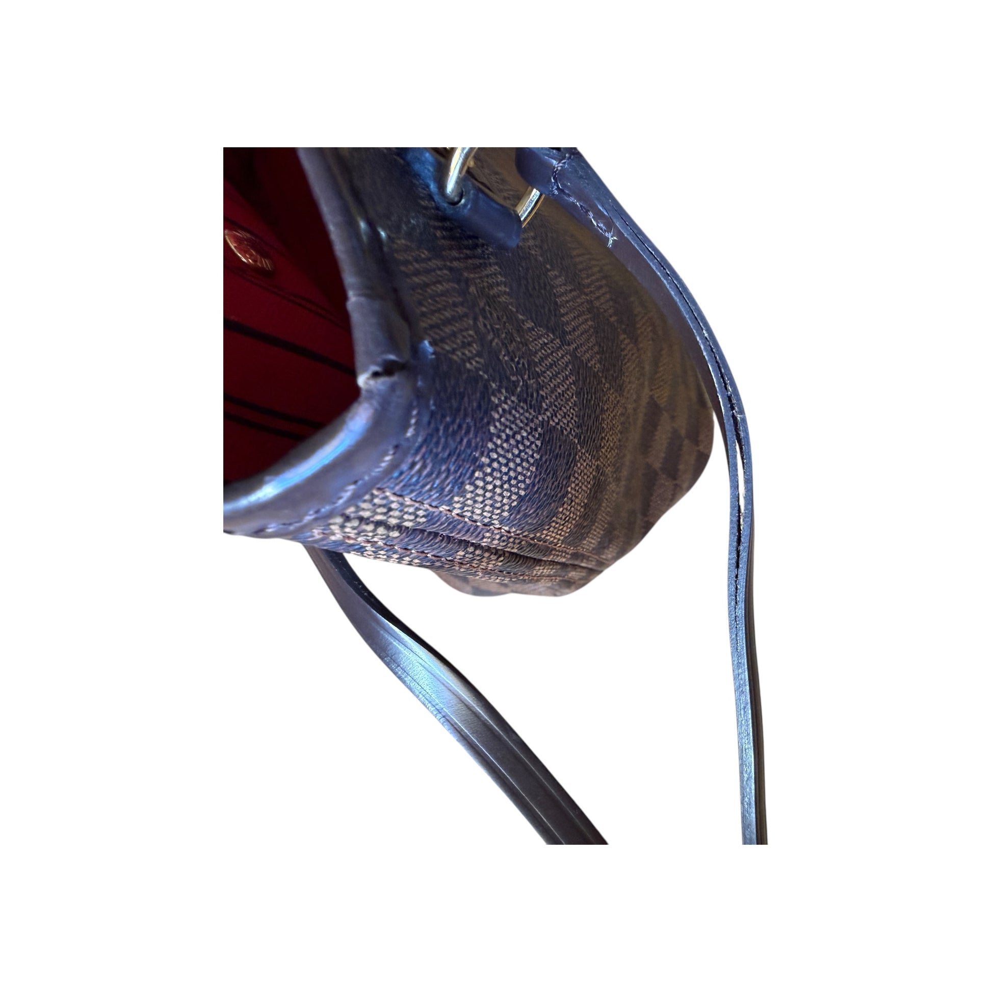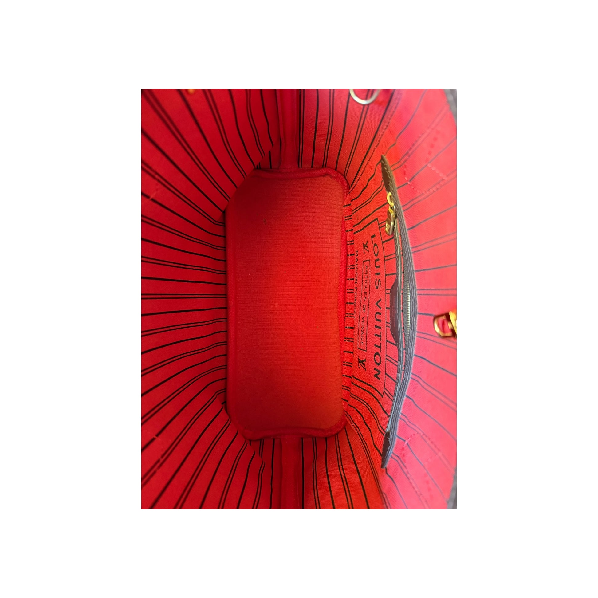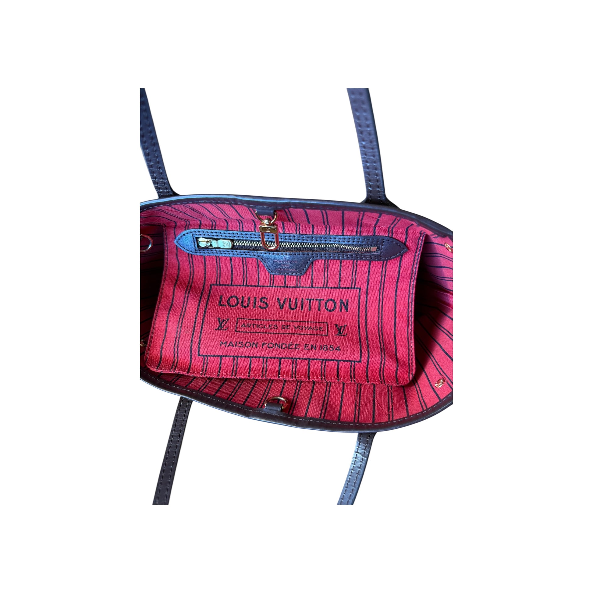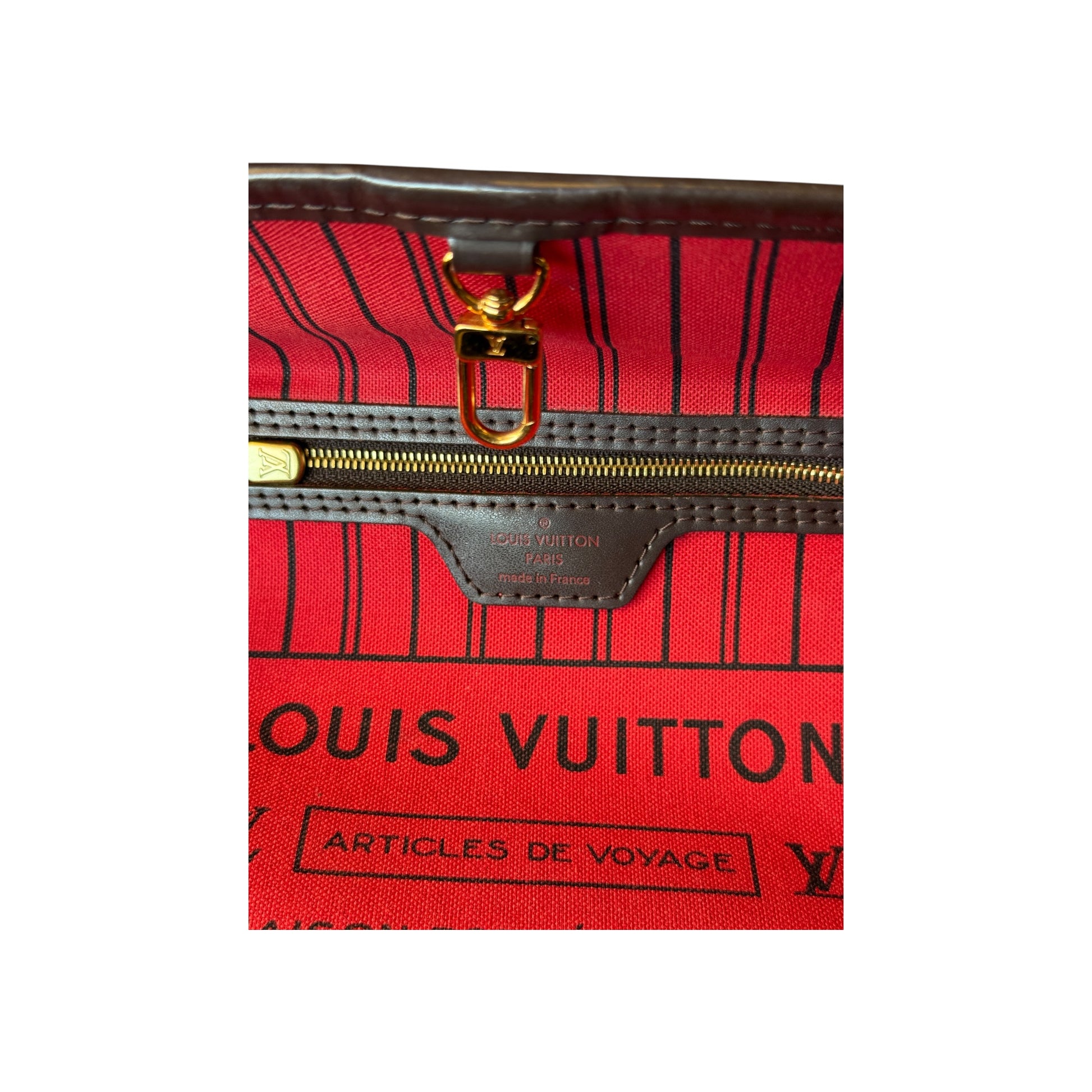 Sac iconique Louis Vuitton Neverfull PM en toile Damier Ebene, vendu avec sa pochette assortie d’origine. Modèle pratique et intemporel.