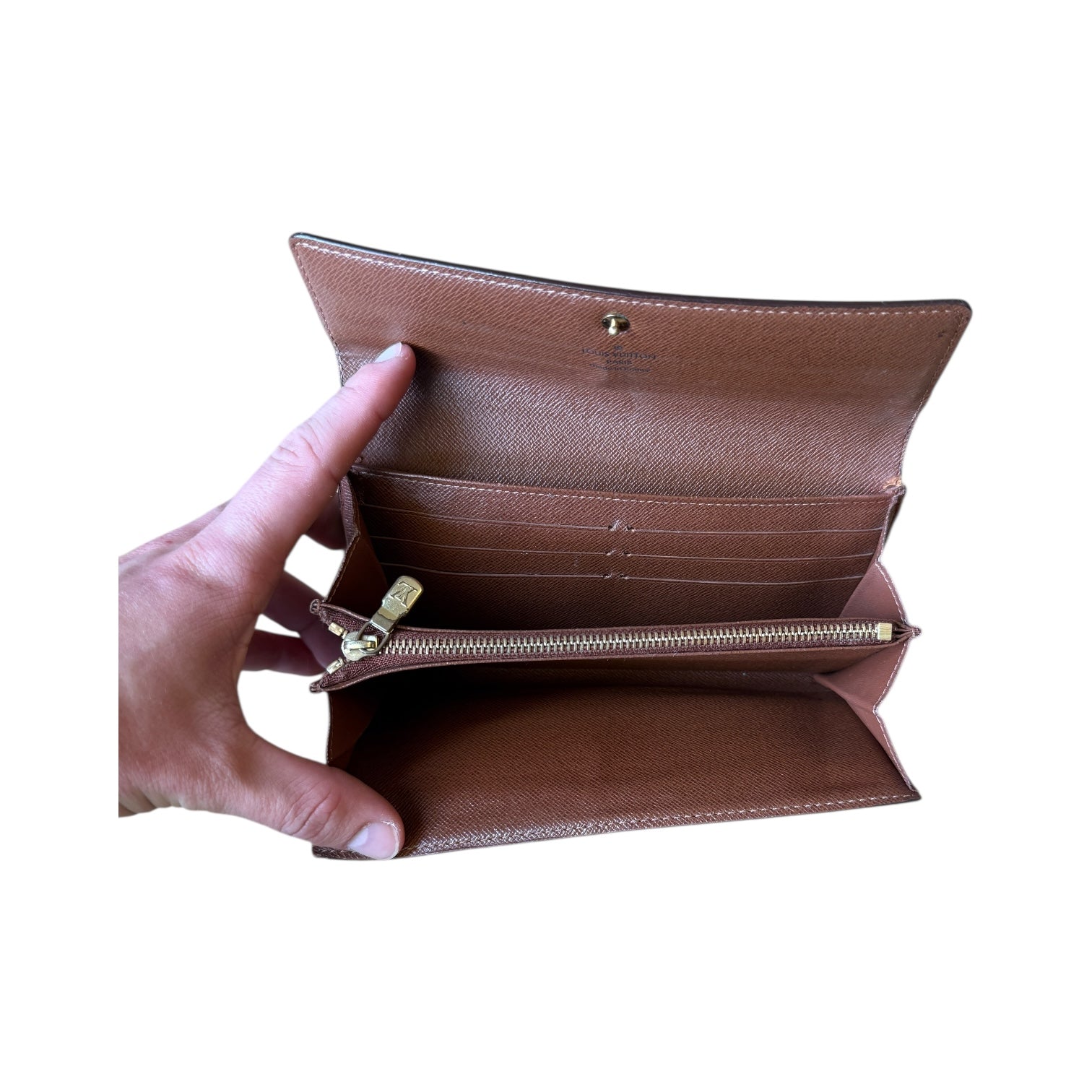 Portefeuille Louis Vuitton Sarah en toile Monogram, datant de 2006, en bon état général.