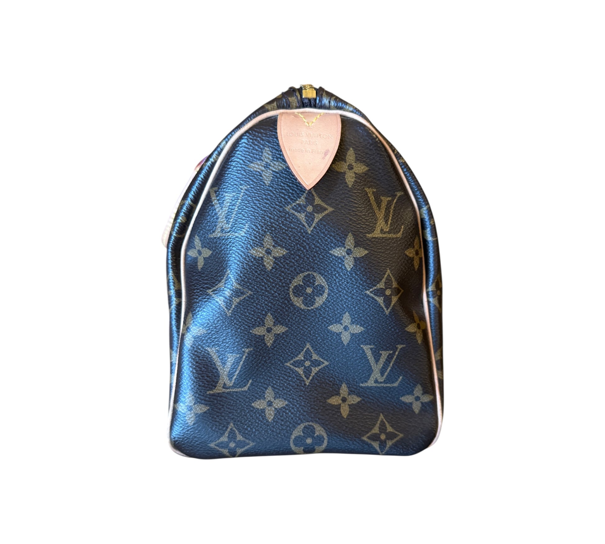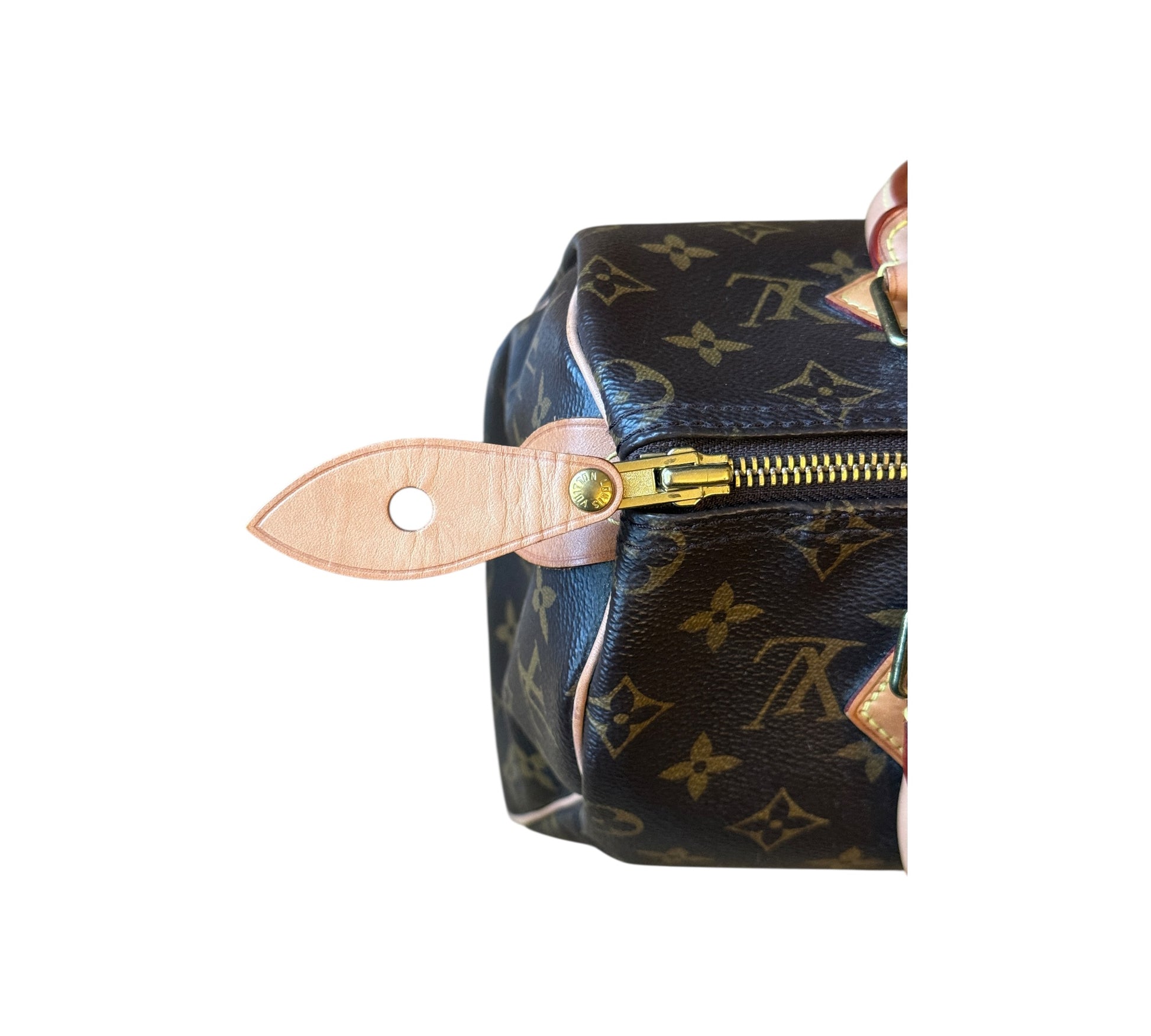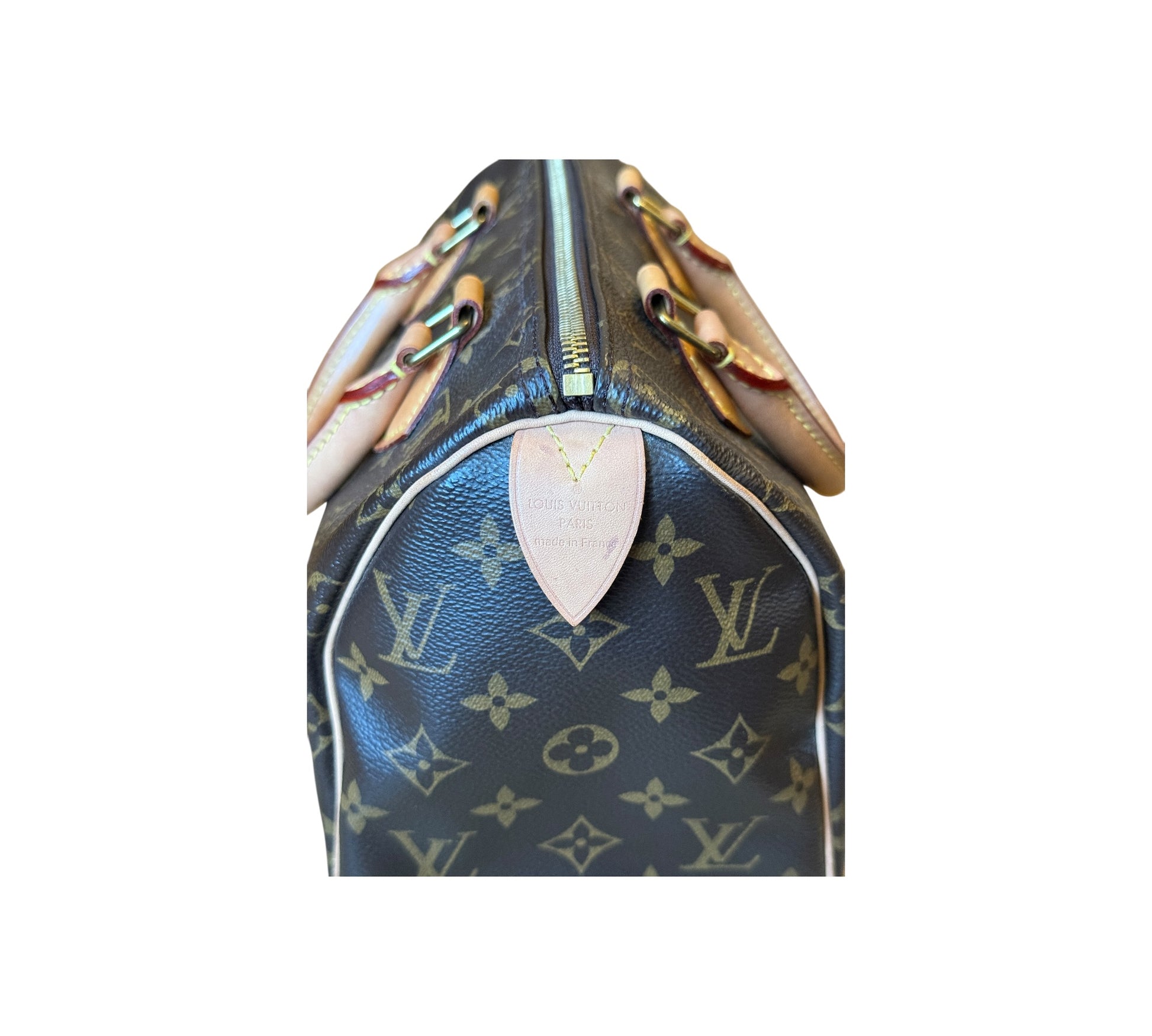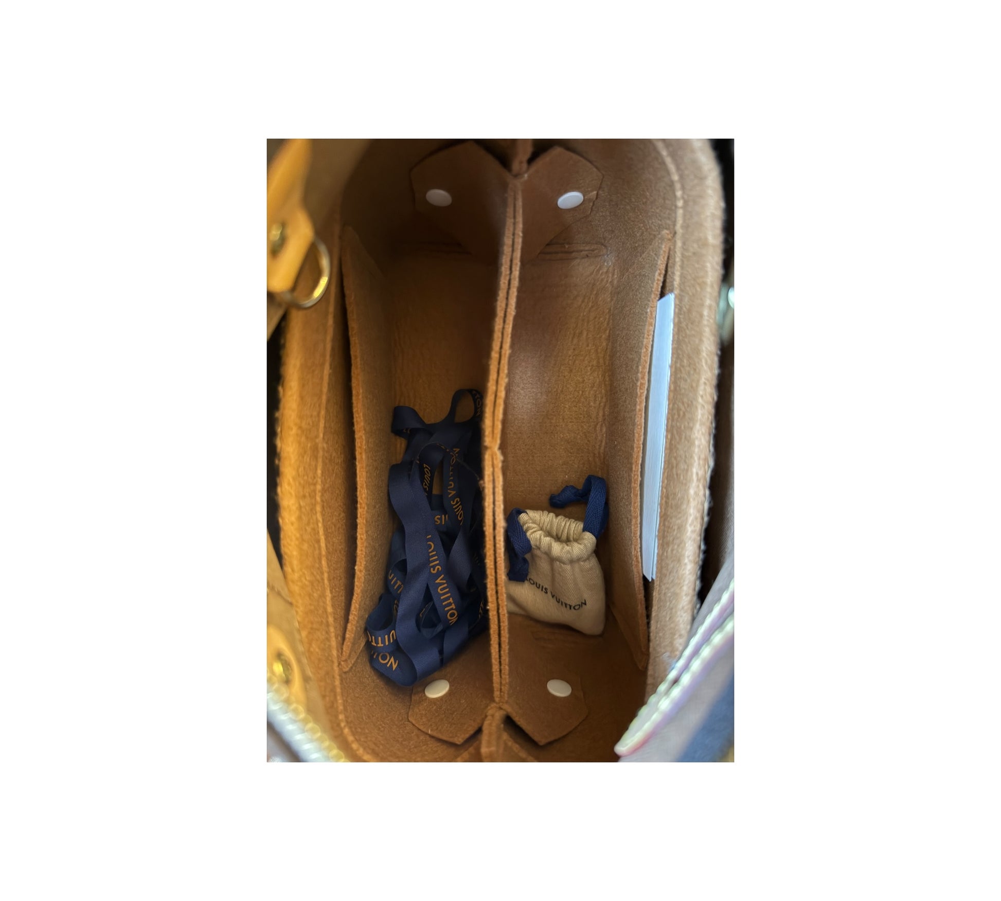 État comme neuf. Livré avec tous les accessoires : dust bag, ruban Louis Vuitton, cadenas + 2 clés, pochette cadenas, carte Louis Vuitton, et un organiseur intérieur. Très légères taches sur le cuir, visibles sur photo 10/11/12.