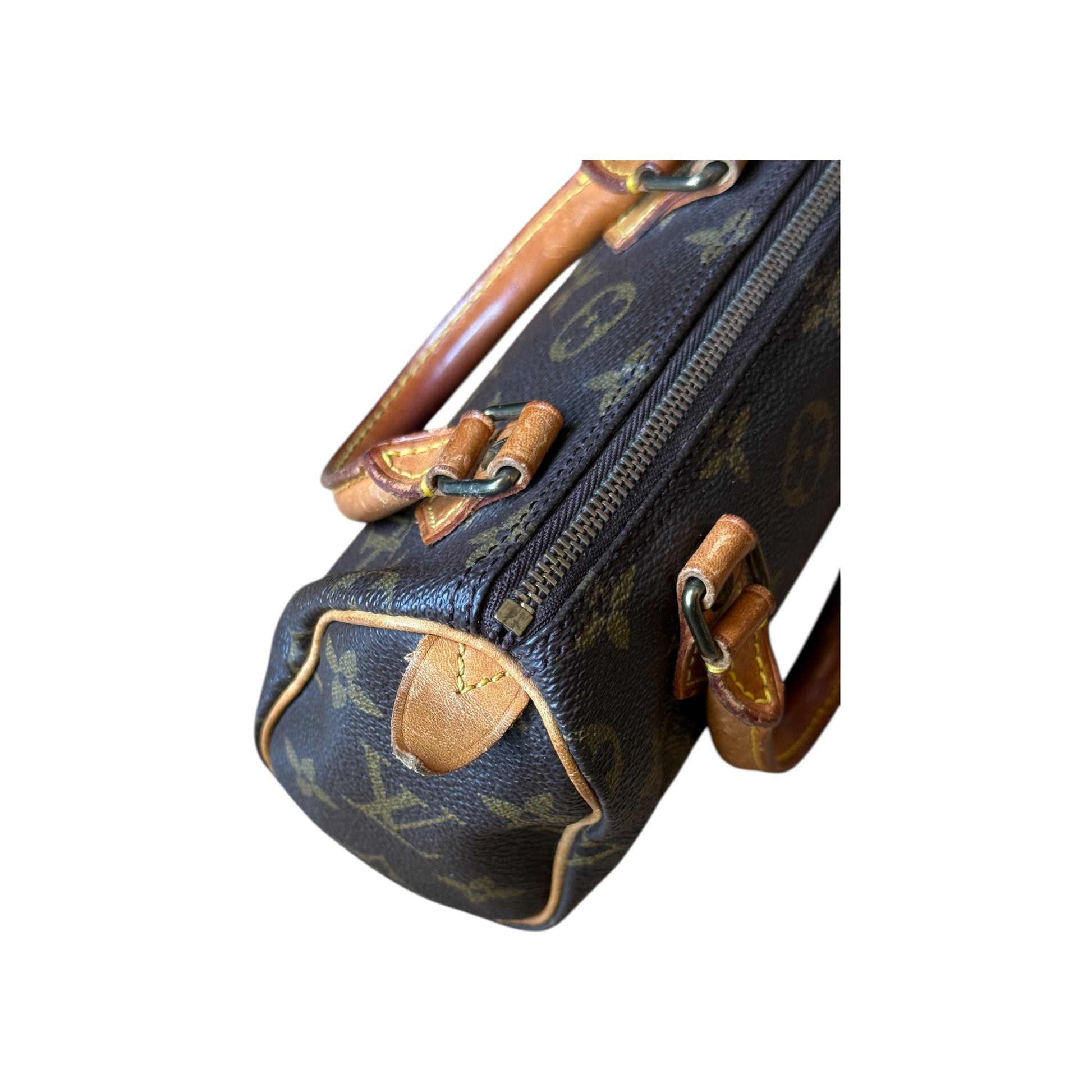 Adorable Speedy Mini vintage de 1992 en excellent état, vendu avec sa bandoulière en toile Monogram.